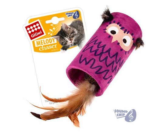 Игрушка для кошек "Сова" в форме цилиндра имеет внутри хвостик из натурального пера на резинке с встроенным звуковым чипом. Благодаря резинке при натягивании хвостик отскакивает обратно во внутрь цилиндра, что очень привлекает кошку. Звук возникает при касании игрушки лапами, а прерывается через несколько секунд. Игрушки этой серии предназначены для удовлетворения охотничьих инстинктов вашего питомца.