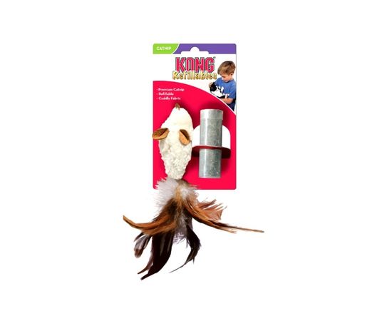 Kong игрушка д/кошек Мышь полевка с перьями 15 см. плюш с тубом кошачей мяты, NM42