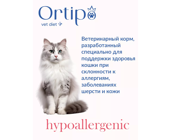 Ветеринарный корм, разработанный специально для поддержания здоровья кошки при склонности к аллергиям, заболеваниях шерсти и кожи