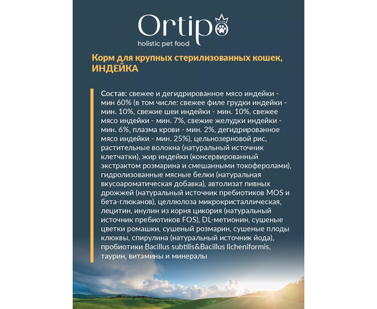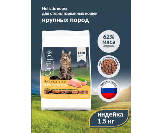 Корм Ortipo для взрослых кошек крупных пород стерилизованные (индейка) 1,5 кг