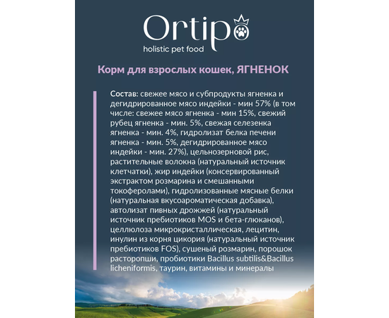 Корм Ortipo для взрослых кошек (ягненок) 0,5 кг