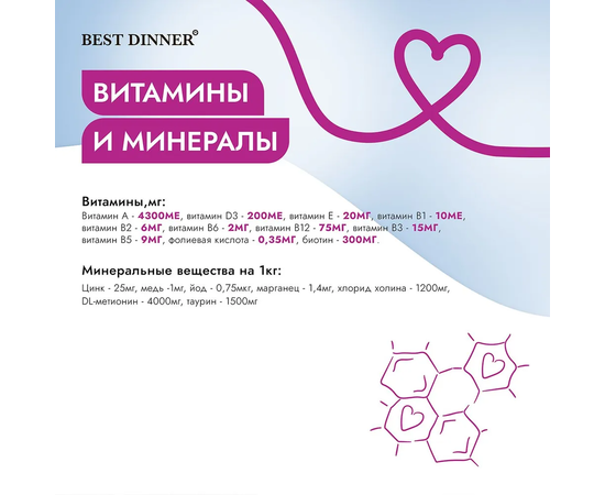 Вы можете быть уверены, что ваша кошка получает все необходимое для здорового и счастливого существования.Выбирайте лучший корм для котов - уринари для кошек Best Dinner VET PROFI Urinary профилактика МКБ. Обеспечьте своей кошке здоровое питание и поддержку мочевыводящей системы, чтобы она могла наслаждаться жизнью на полную котовую!! Состав: Мясо и субпродукты (ягнёнок, курица), бульон, картофель, картофельный крахмал, клюква, витаминно-минеральный комплекс, лососевое масло, таурин.