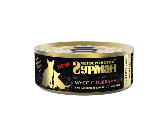 Четвероногий гурман Golden влажный корм для кошек и котят Мусс с говядиной 100гр.