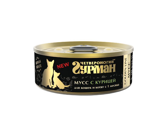 Четвероногий гурман Golden влажный корм для кошек и котят Мусс с курицей 100гр.