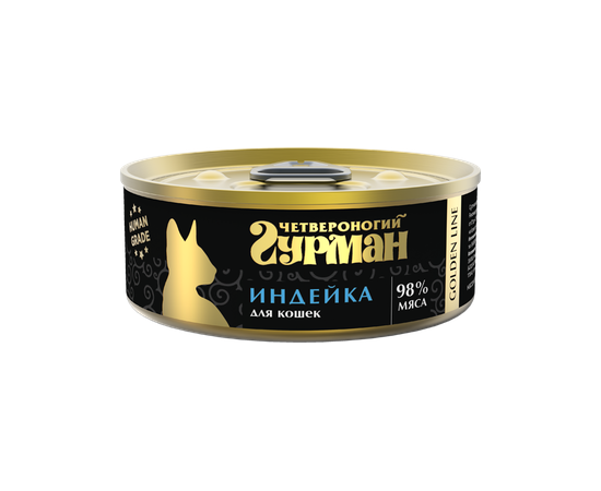 Четвероногий гурман “Golden line” для кошек – это влажный корм суперпремиум класса, приготовленный из одного вида мяса качества Human grade (пригодного в пищу человеку) без добавления субпродуктов, зерновых и сои. Корм полностью натуральный – в его составе нет искусственных красителей, ароматизаторов, усилителей вкуса и ГМО.