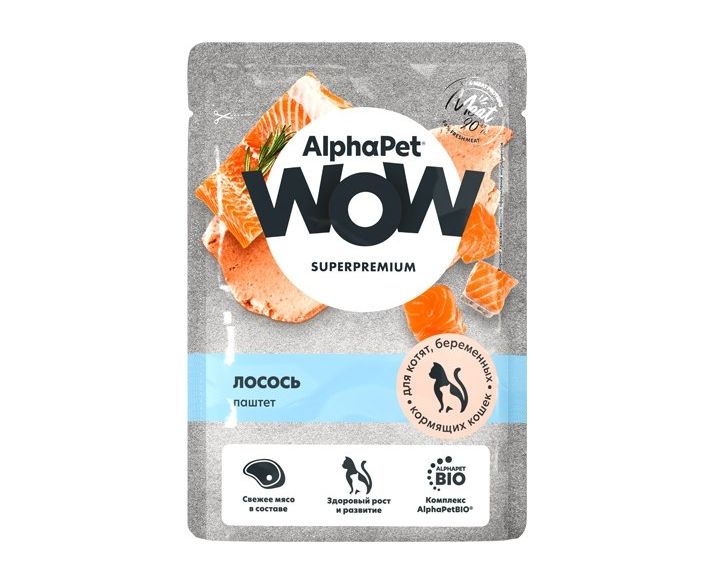 AlphaPet WOW пауч лосось паштет д/берем., кормящ. кошек и котят 85г, 655322