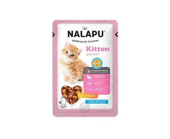 Влажный корм NaLapu Kitten для котят, сочные кусочки с ягненком в нежном соусе, 77г