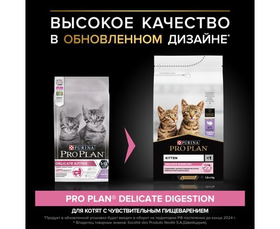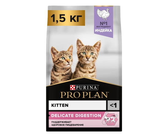 Сухой корм Pro Plan Delicate Kitten для котят с чувствительным пищеварением, с индейкой, 1,5 кг