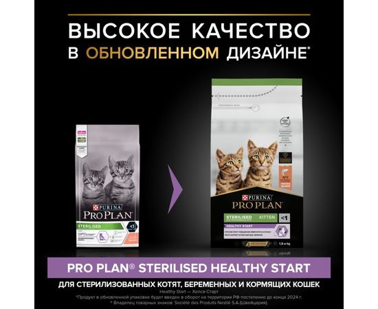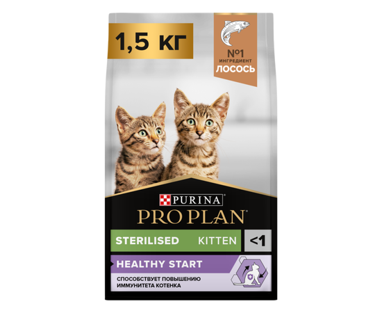 Сухой корм Pro Plan Sterilised Kitten для стерилизованных котят, с лососем, 1,5 кг