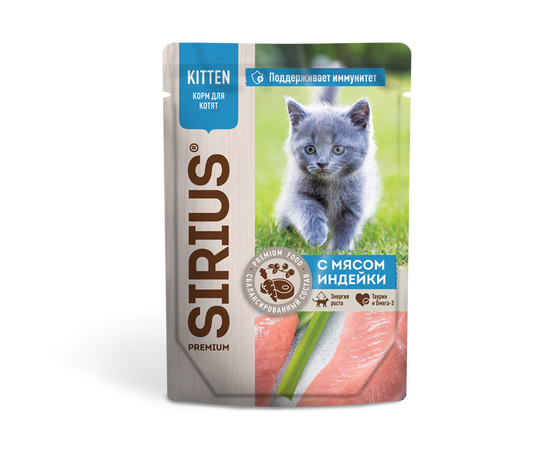 Влажный корм Sirius для котят, индейка и курица, 85 г