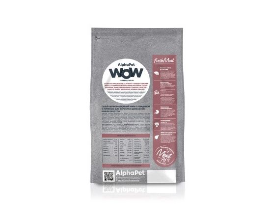 Сухой корм AlphaPet WOW для взрослых кошек, с говядиной и печенью, 0,75кг