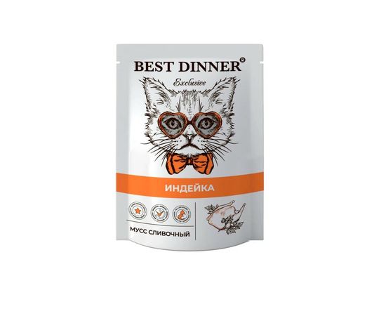 Влажный корм Best Dinner Cat Exclusive для взрослых кошек, индейка мусс сливочный, 0,085 кг