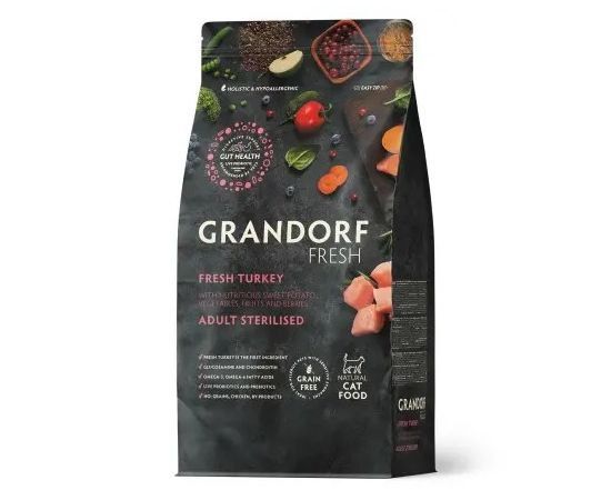 Сухой корм Grandorf Fresh для кошек, свежее мясо индейки с бататом, 0.4кг
