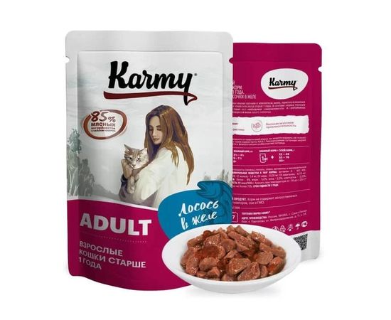 Влажный корм Карми Эдалт для кошек старше 1 года, лосось в желе, 80 гр