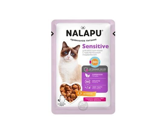 Влажный корм NaLapu Sensitive для взрослых кошек с чувствительным пищеварением, сочные кусочки с ягненком в нежном соусе, 77г