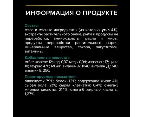 Влажный корм Pro Plan Adult для кошек, с уткой в соусе, 85 г