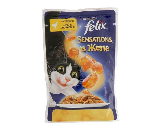 Влажный корм Felix Sensations для кошек, с курицей и морковью в желе, 75 г