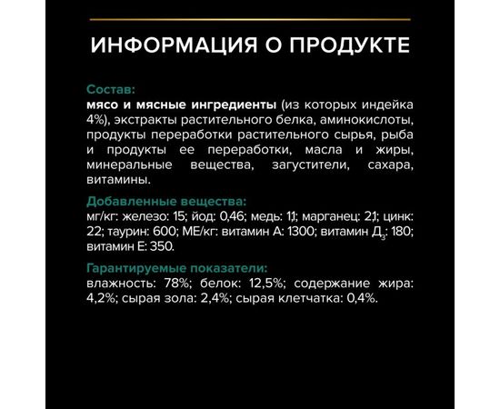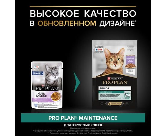 Влажный корм Pro Plan Adult для кошек старше 7 лет, с индейкой в соусе, 85 г