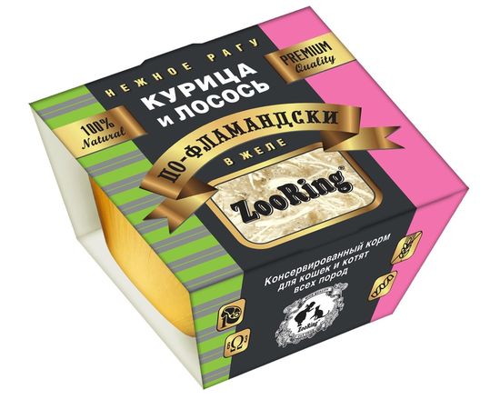Корм ZooRing для взрослых кошек, курица и лосось в желе по Фламандски,75гр