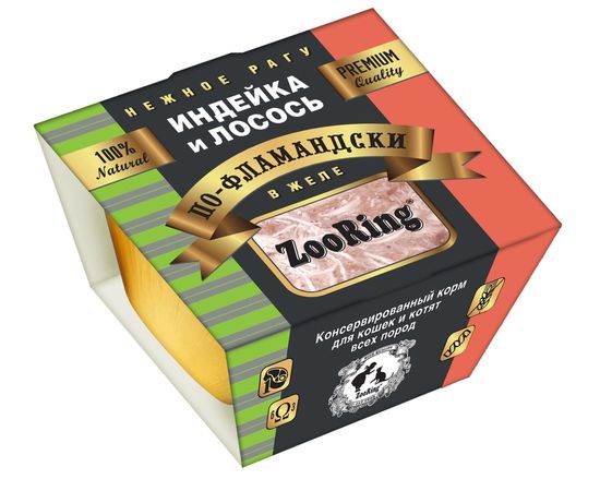 Влажный корм ZooRing для взрослых кошек, индейка и лосось по Фламандски,75гр