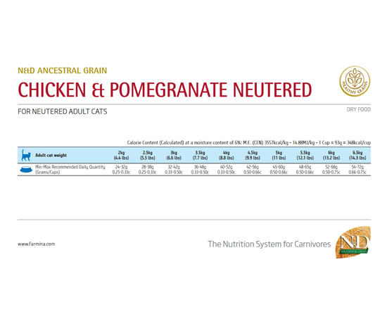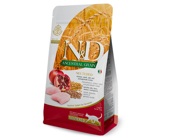 Farmina N&D CAT Ancestral Low Grain CHICKEN Neutered для взрослых стерильных кошек курица 300 г
