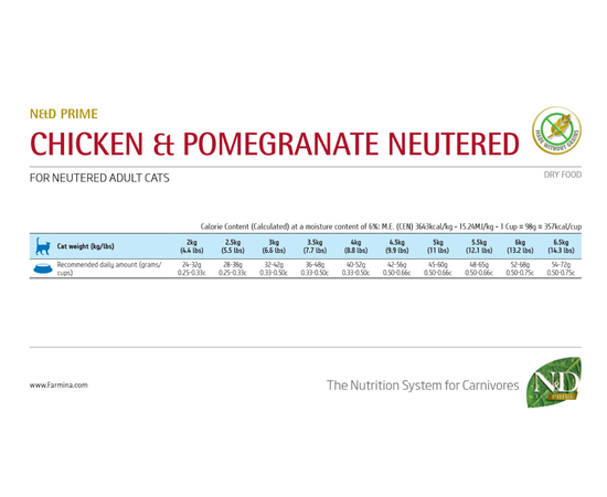 Farmina N&D Prime Neutered для взрослых кошек курица с гранатом 1.5 кг