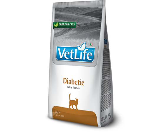 Низкий уровень и специально подобранные источники крахмала и сахаров, содержащиеся в диетическом питании Farmina Vet Life Diabetic, снижают уровень глюкозы в крови после приема пищи.