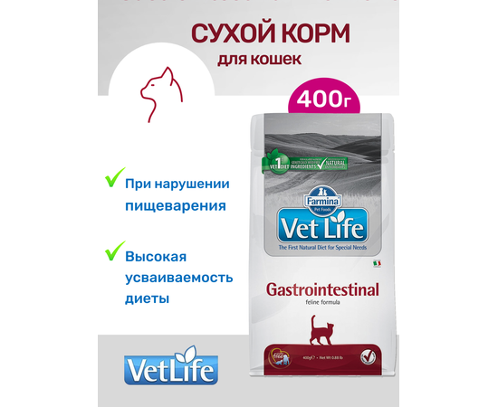 Farmina Vet Life Cat Gastrointestinal для взрослых кошек с проблемами ЖКТ 400 г