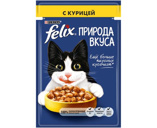 Влажный корм FELIX Природа Вкуса для кошек, с курицей в соусе, 75 г