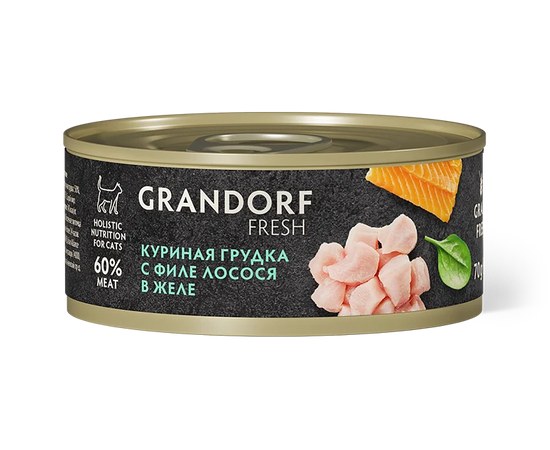 GRANDORF Fresh консервы для кошек куриная грудка с филе лосося в желе 70г