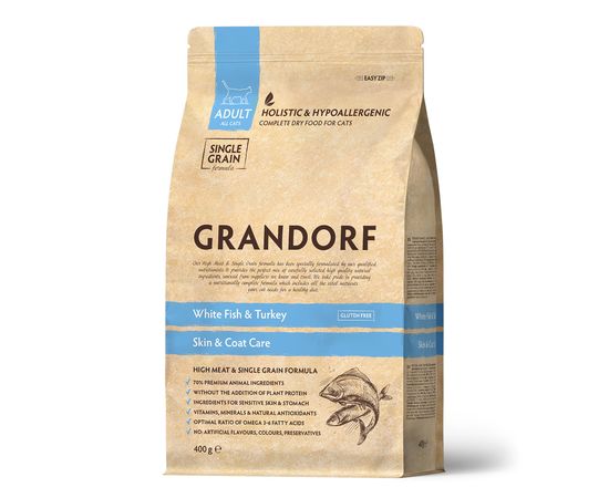 Сухой корм Grandorf для кошек, белая рыба с индейкой, 0,4 кг