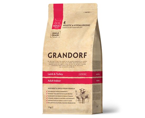 Сухой корм Grandorf для домашних кошек, ягненок с рисом, 2 кг.