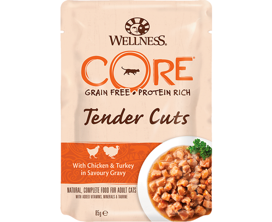 Влажный корм Wellness CORE Tender Cuts для кошек, нарезка в соусе из курицы с индейкой, 85 г