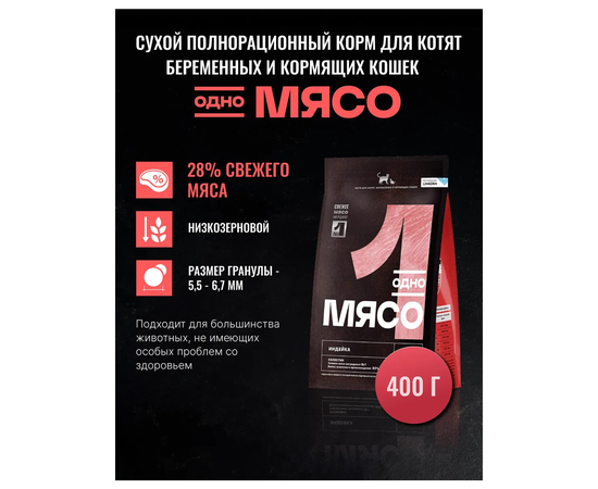 Корм ОДНО МЯСО для котят и кормящих кошек с индейкой 400 гр