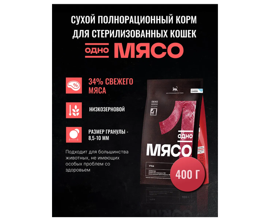 Корм "ОДНО МЯСО" для стерилизованных кошек с мясом утки 400г