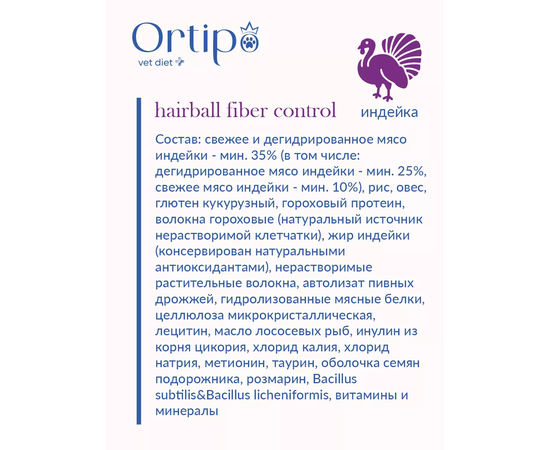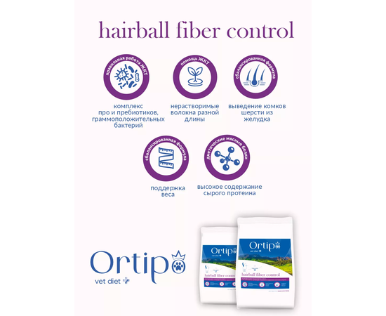Корм Ortipo для кошек Hairball Fiber Control 1,5 кг