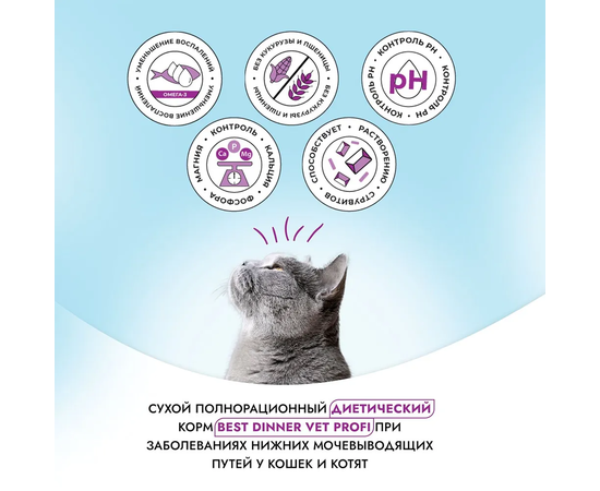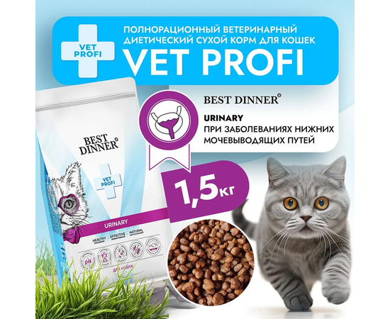 Выбирайте лучший корм для котов – полнорационный диетический корм для кошек Best Dinner VET PROFI Urinary. Обеспечьте своей кошке здоровое питание и поддержку здоровья почек, чтобы она могла наслаждаться жизнью на полную котовую!
