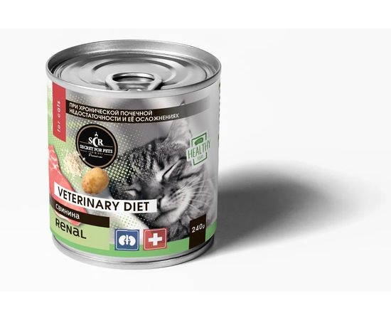 Консервы Secret Premium RENAL для кошек со свининой - диетический корм при хронической почечной недостаточности и ее осложнениях у взрослых и стареющих кошек. Развитие почечной недостаточности у кошки происходит без видимых симптомов.Диета является одним из важнейших факторов в лечении этой патологии. Потеря аппетита у питомца - частая проблема при данном заболевании. Влажный корм Secret Premium Renal обладает повышенной вкусовой привлекательностью и нежной текстурой, которые стимулируют аппетит. Рацион содержит ниженное количество фосфора и сбалансированное количество качественного белка для поддержания функции почек. Повышенная каллорийность корма позволяет обеспечить животного всеми необходимыми питательными веществами даже при сниженном объеме порции.