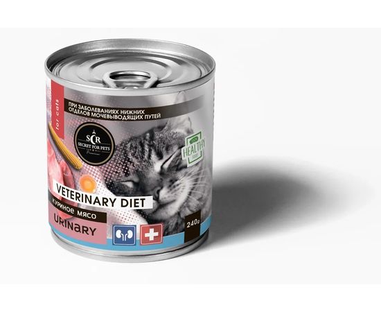 Консервы Secret Premium URINARY для кошек с мясом птицы - диетический корм при заболеваниях нижних отделов мочевыводящих путей у взрослых кошек. Корм рекомендуется для растворения струвитных камней и снижения вероятности их повторного образования, профилактики образования оксалатов, со свойствами подкисления мочи и низким содержанием магния. Заболевания мочевыводящих путей - самые распространённые проблемы у кошек. Диета — один из важнейших факторов в лечении данных патологий. Особая формула корма с умеренным содержанием магния и фосфора способствует растоворению струвитных камнией. Увеличенное содержания натрия в рационе способствует увеличению водопотребления, объема мочи и снижению уровня предшественников мочевых камней. Мочекаменной болезни чаще подвержены кошки с избыточным весом, поэтому в рационе снижено количество жиров. Поддержание оптимального веса кошки будет также способствовать нормальной работе мочевыделительной системы. В состав корма также входит таурин - незаменимая аминокислота, которая важна для здоровья глаз, шерсти, органов пищеварения, мочеполовой и репродуктивной систем.