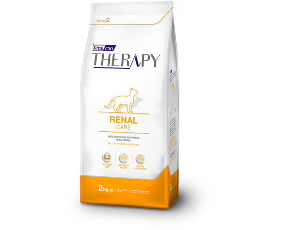 Vitalcan Therapy Feline Renal Care полнорационный корм для кошек, с умеренным содержанием белка и с Омега-3 жирными кислотами, которые оказывают противовоспалительное действие.