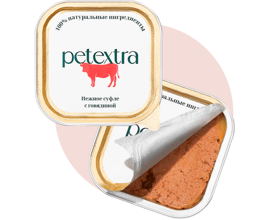 PETEXTRA влажный корм для взрослых кошек, нежное суфле с говядиной, в ламистерах - 100 г