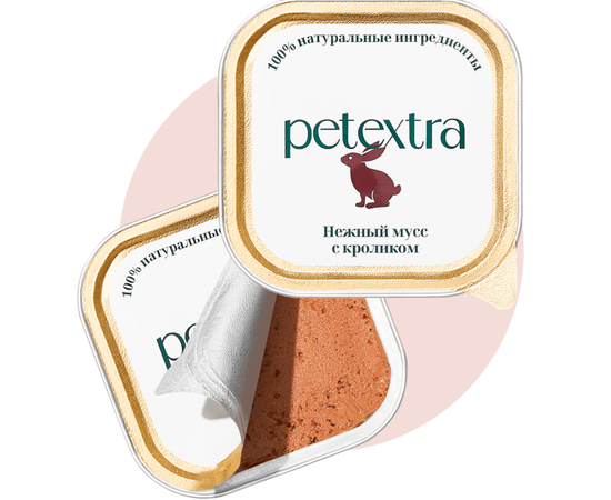 PETEXTRA влажный корм для взрослых кошек, нежный мусс с кроликом, в ламистерах - 100 г