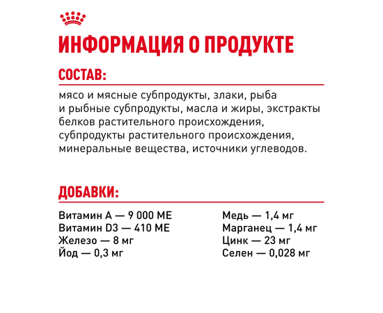 Рекомендуемая комбинация с сухими продуктами Royal Canin®: