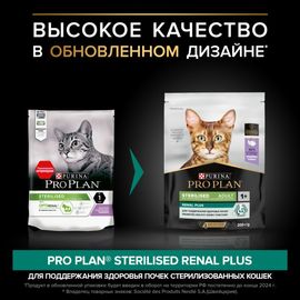 - Pro Plan Sterilised — предназначен для котов и кошек, прошедших кастрацию и стерилизацию. Обеспечивает чувство сытости и хорошую физическую форму. Также этот вариант полезен для профилактики МКБ — низкое содержание фосфора.
