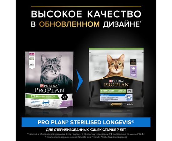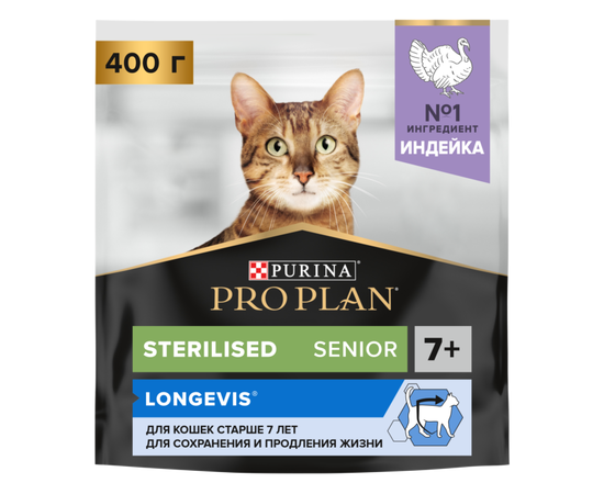 Сухой корм Pro Plan Sterilised для стерилизованных кошек старше 7 лет, с индейкой, 400 г