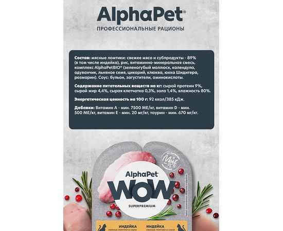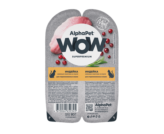 Влажный корм AlphaPet WOW для стерилизованных кошек, индейка ломтики в соусе, 80г