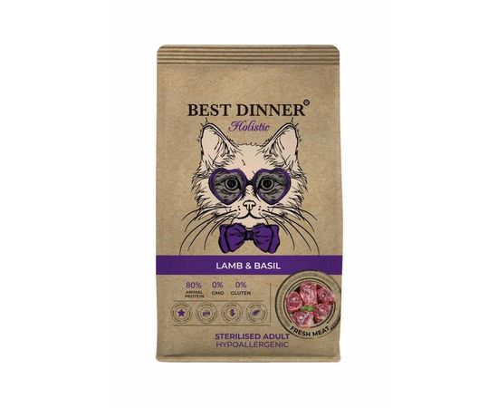 Сухой корм Best Dinner Cat Adult Holistic Sterilized для стерилизованных кошек, ягненок с базиликом, 1,5 кг