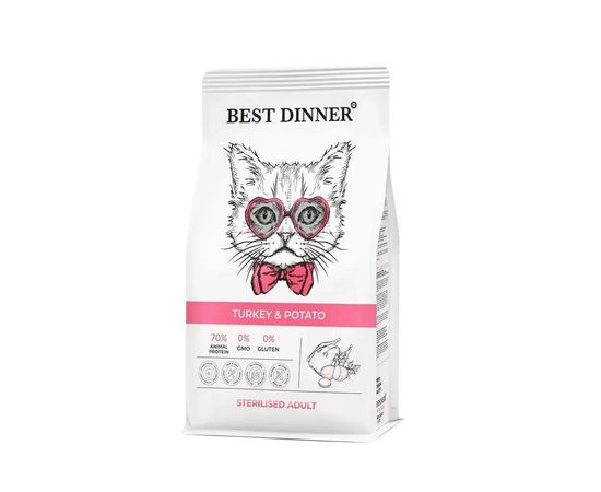 Сухой корм Best Dinner Cat Adult Sterilized для стерилизованных кошек, индейка с картофелем, 0,4 кг