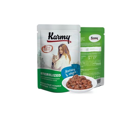 Влажный корм Карми Стерилайз для стерилизованных кошек и кастрированных котов, лосось в соусе, 80г