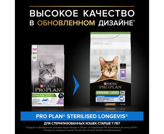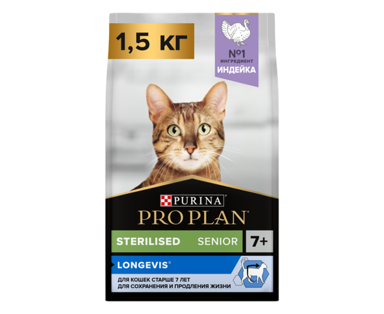 Сухой корм Pro Plan Sterilised для стерилизованных кошек старше 7 лет, с индейкой, 1,5 кг